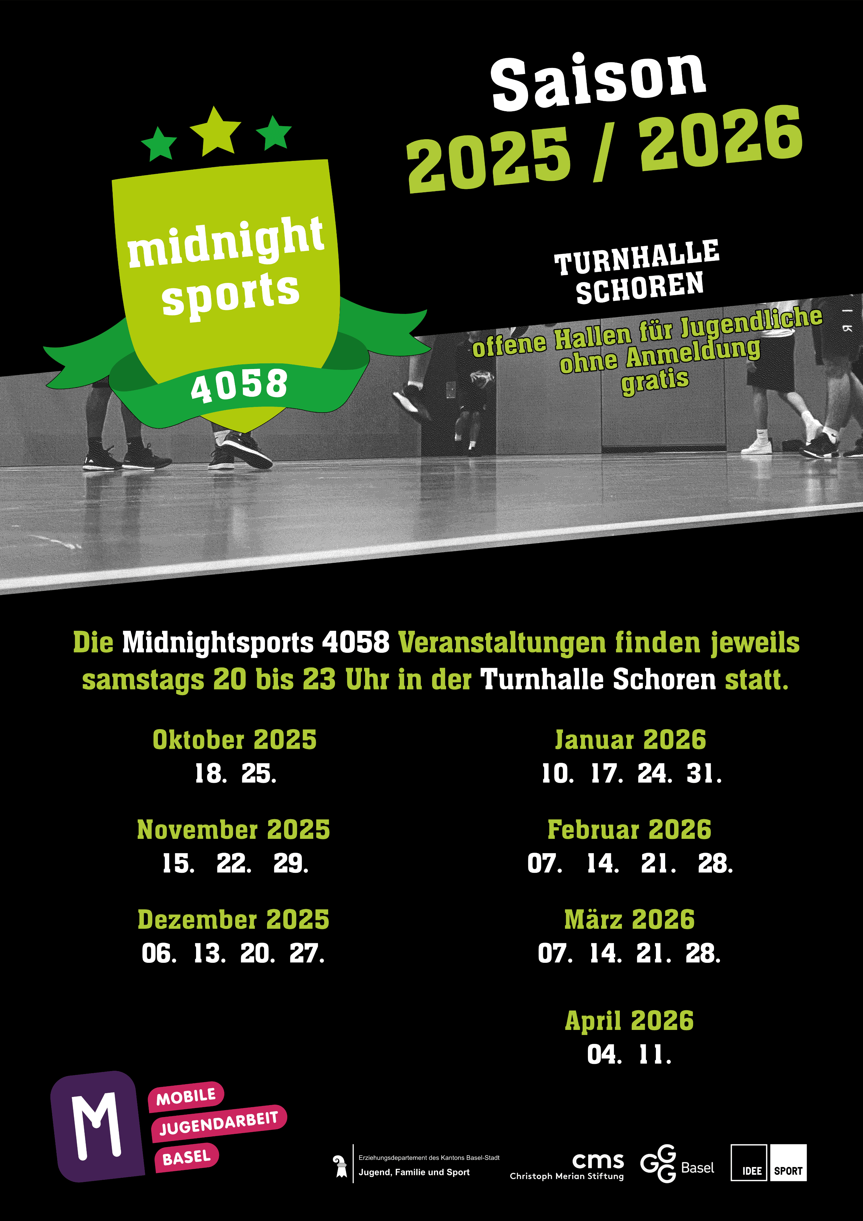 Midnightsports bietet Jugendlichen in Basel einen aktiven und sicheren Treffpunkt am Samstagabend von 20 bis 23 Uhr. Das Projekt der Mobilen Jugendarbeit Basel (MJAB) schafft in den Quartieren St. Johann und Schoren einen Raum für Sport, Begegnung und Fairplay – geleitet von jungen Erwachsenen direkt aus der Zielgruppe.