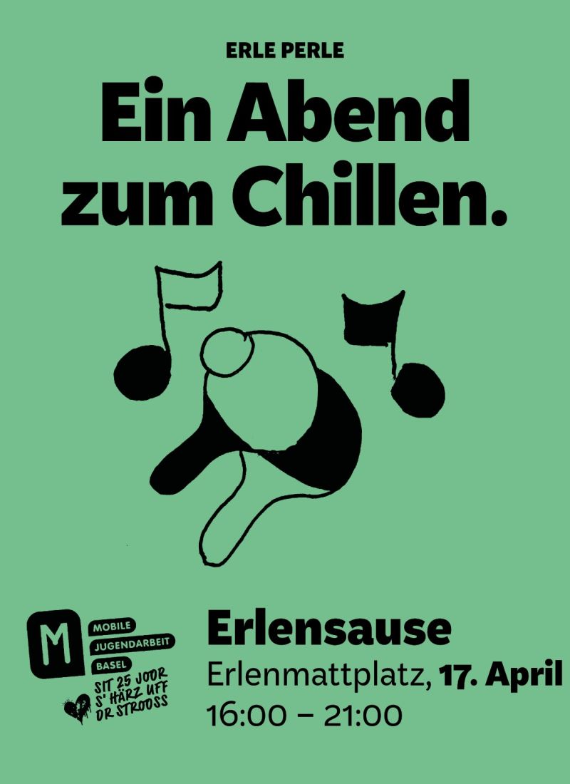 Ein Abend zum Chillen und den Platz der Erle Perle entdecken. Es gibt Spiele, eine Musikanlage, Chill-Ecken, Raum für deine Ideen & verschiedene Workshops zum Ausprobieren und etwas zu futtern: Pinsa, Crêpes oder Grill, lass dich überraschen! Gestalte die Zukunft des Angebots auf der Erle Perle mit: Was braucht es auf dem Platz? Wer soll hier regelmässig Workshops geben? Möchtest du selber etwas ausprobieren? Komm vorbei und erzähl uns deine Ideen.